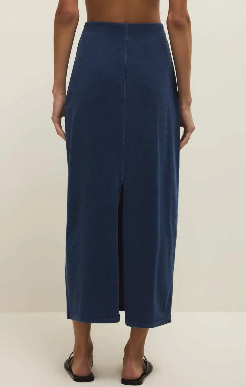 Gail Jersey Denim Midi Skirt - Indigo