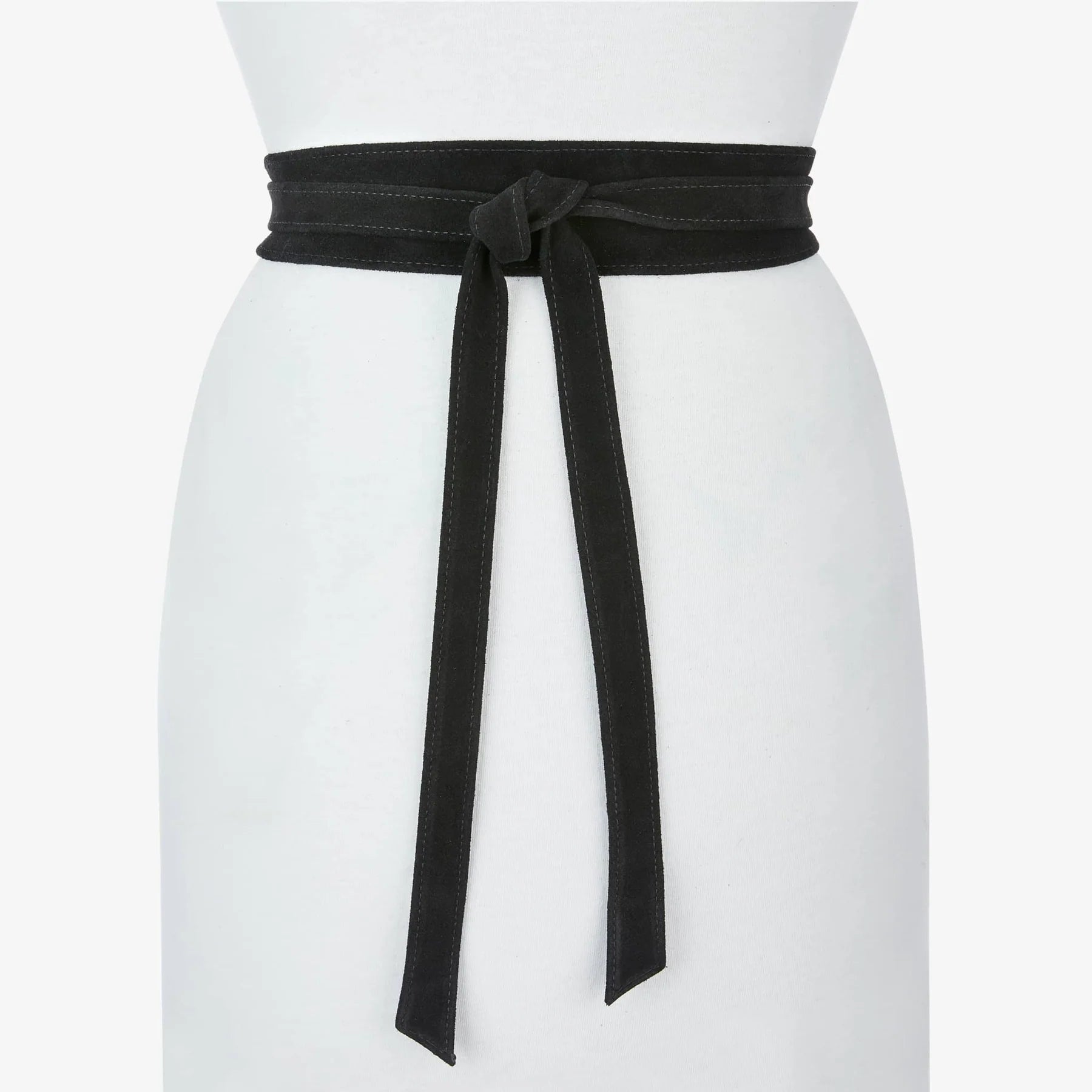 Our Gatlin wrap belt is a slender version of our original Mananas belt. Handcrafted in our soft Italian suede in a wide array of colors to match any mood. Simply wrap at the waist, bring the ends forward and tie into a front knot or a half bow. Wear over a dress or blazer to add shape and create a more chic, elevated look.