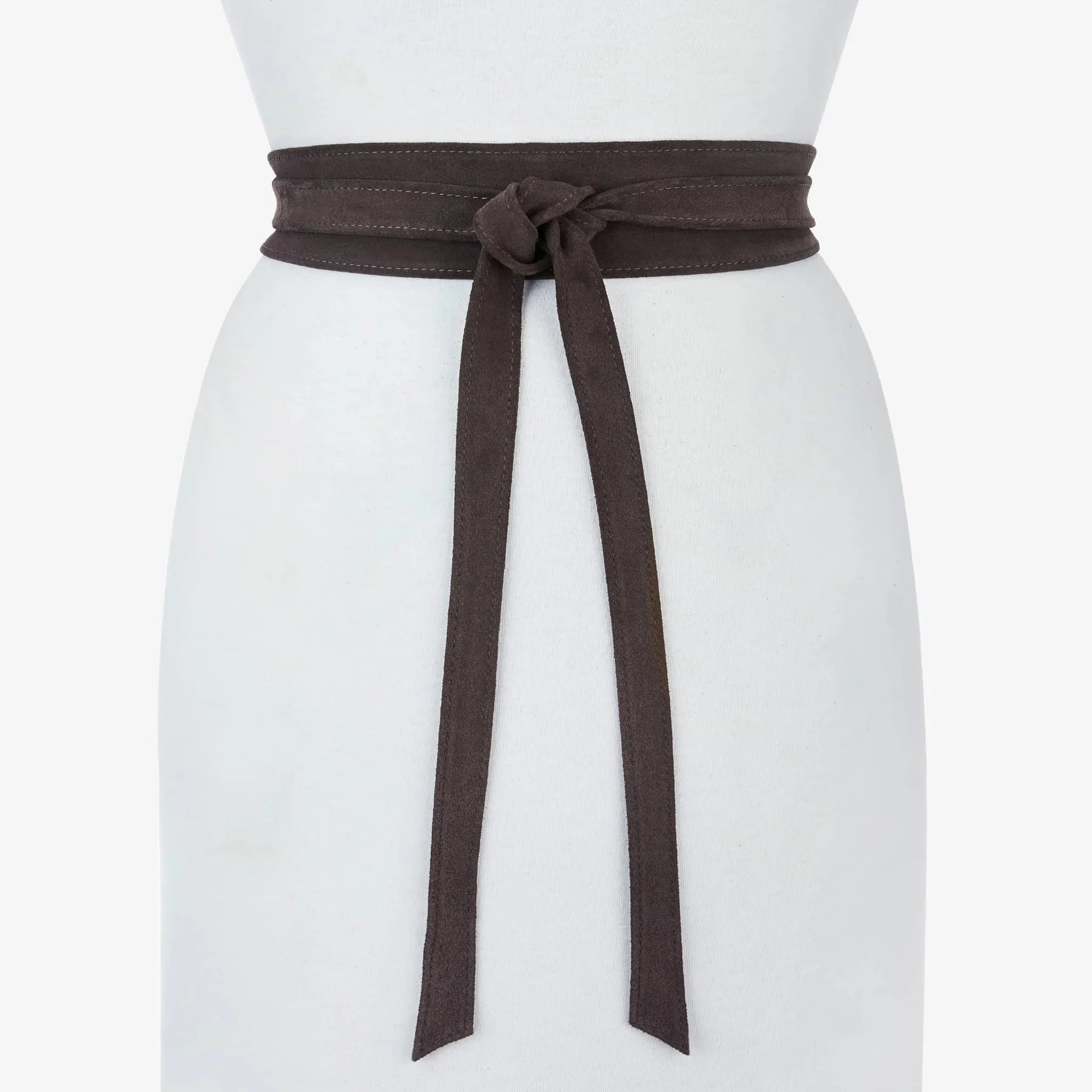 Our Gatlin wrap belt is a slender version of our original Mananas belt. Handcrafted in our soft Italian suede in a wide array of colors to match any mood. Simply wrap at the waist, bring the ends forward and tie into a front knot or a half bow. Wear over a dress or blazer to add shape and create a more chic, elevated look.