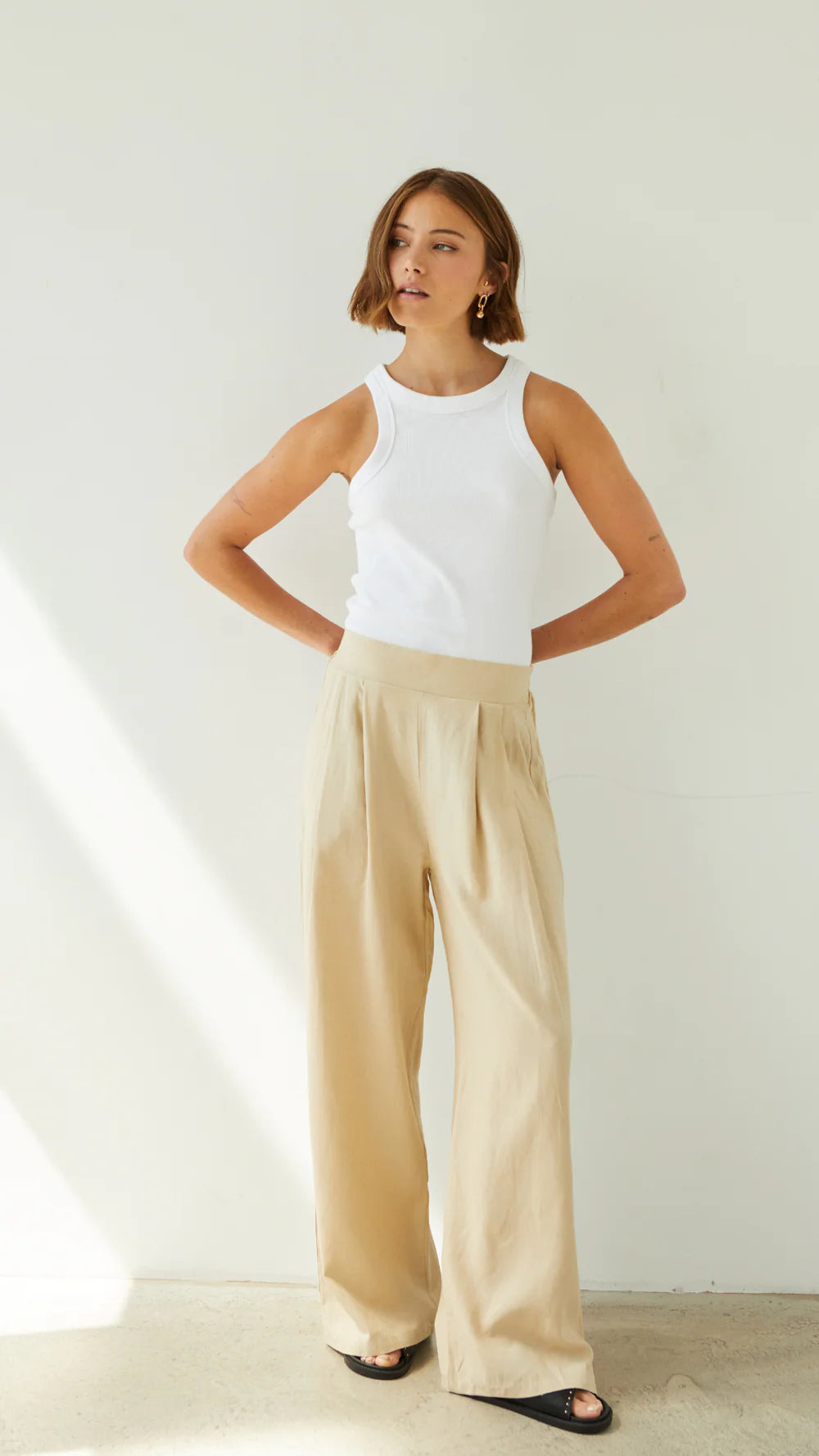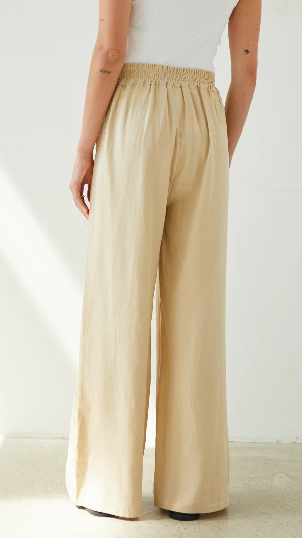 Super soft linen blend wide-leg trousers with a wide elasticated back waistband for an easy fit and exceptional comfort. These drapey wide leg trousers with tailoring accents will become an easy to wear wardrobe staple. Style casually for a polished day look worn with your favourite flats