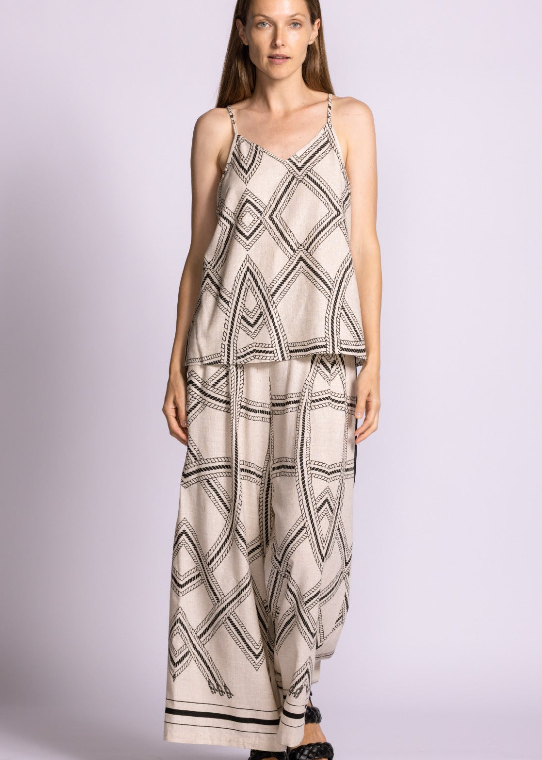 Effortless elegance meets comfort in this flowy lightweight tank. Designed with a relaxed silhouette that moves with you, it pairs perfectly with our matching pants for a coordinated, put-together look. Ideal for layering or wearing solo, this piece transitions seamlessly from day to evening. Soft, breathable fabric keeps you cool and comfortable all day long.