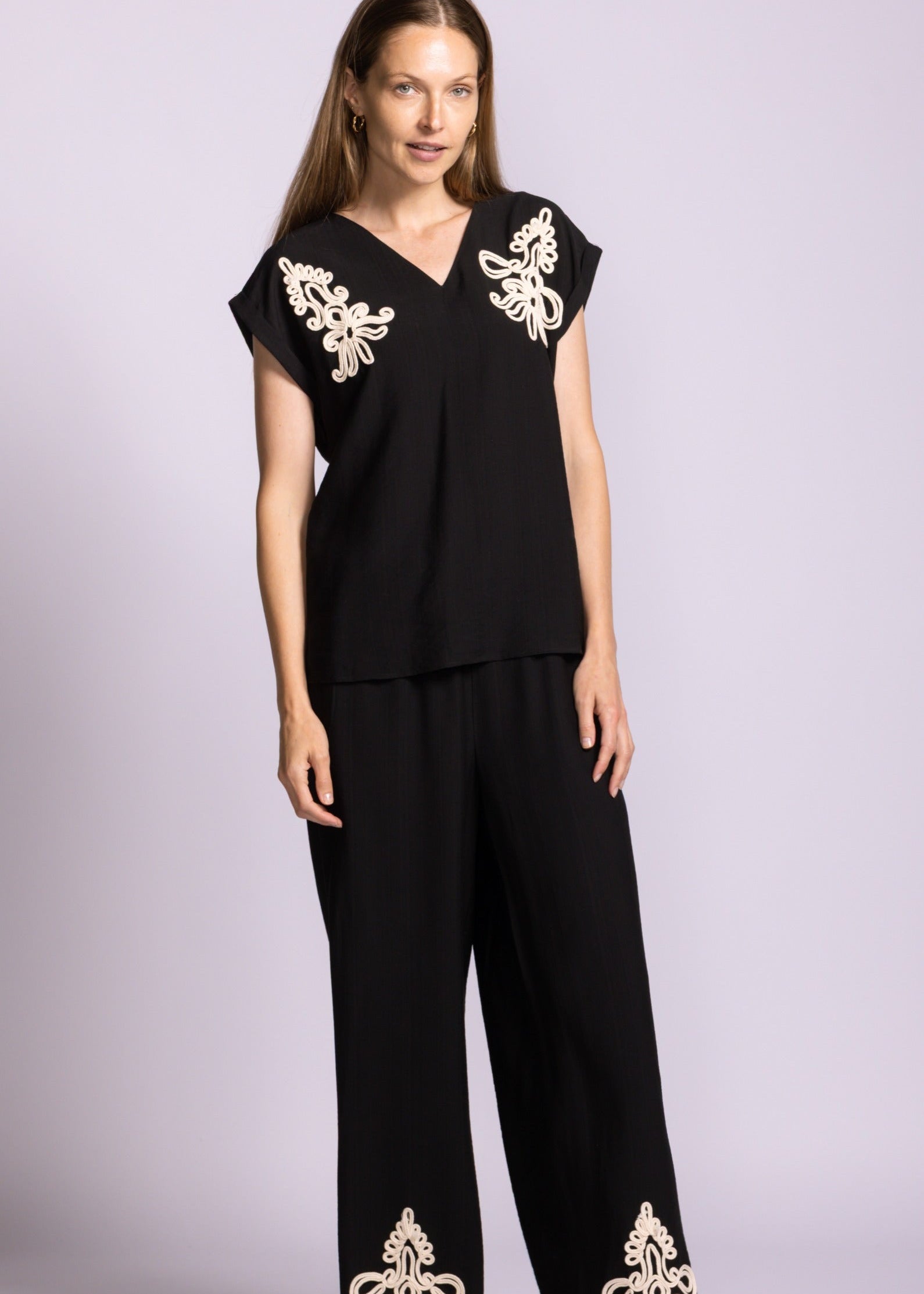 Elevate your everyday wardrobe with the Otsego Top, a classic piece crafted with luxe design details. Its versatile silhouette pairs seamlessly with matching pants to create a polished set that transitions effortlessly from casual to dressed-up occasions. Whether styled for the office or weekend outings, this top delivers timeless sophistication and endless styling possibilities.