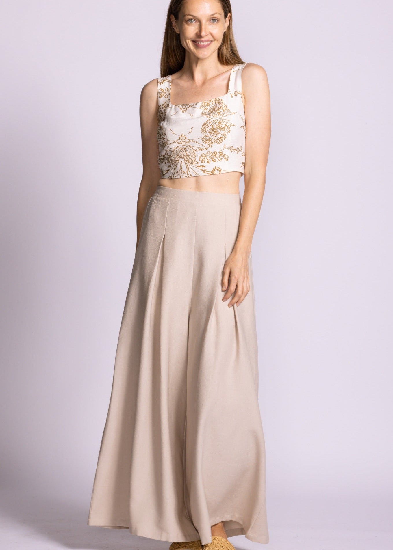 Effortless elegance meets modern silhouette with the Wren Pant. Crafted with a generous wide-leg cut, this piece features refined front kissing pleats that create graceful movement and flattering vertical lines. Perfect for dressing up or down, the Wren transitions seamlessly from office to evening. The relaxed fit offers comfort without compromising on sophistication, making it a versatile staple for any wardrobe.